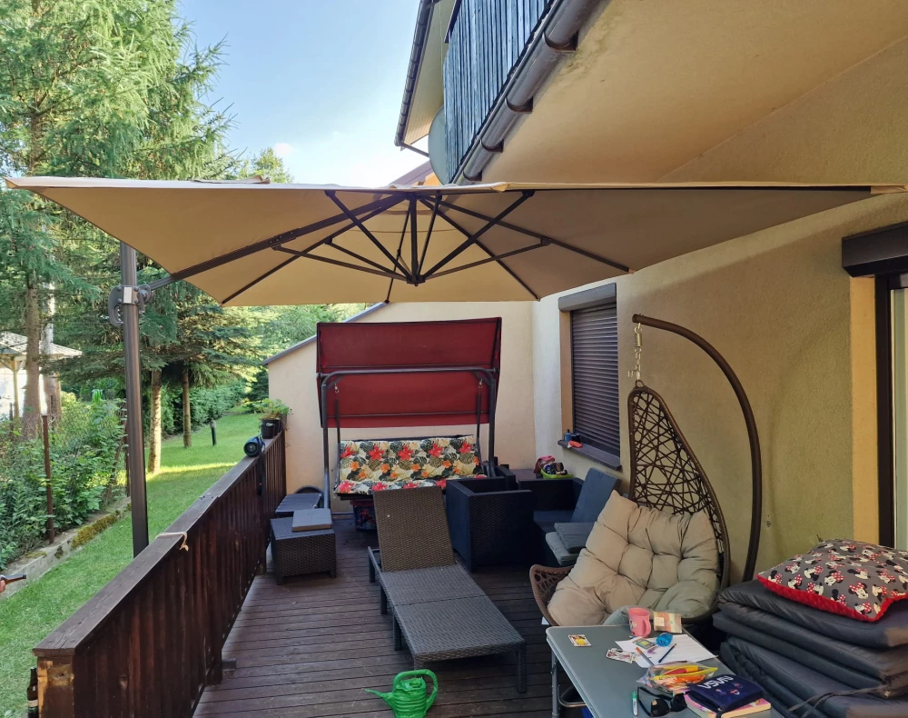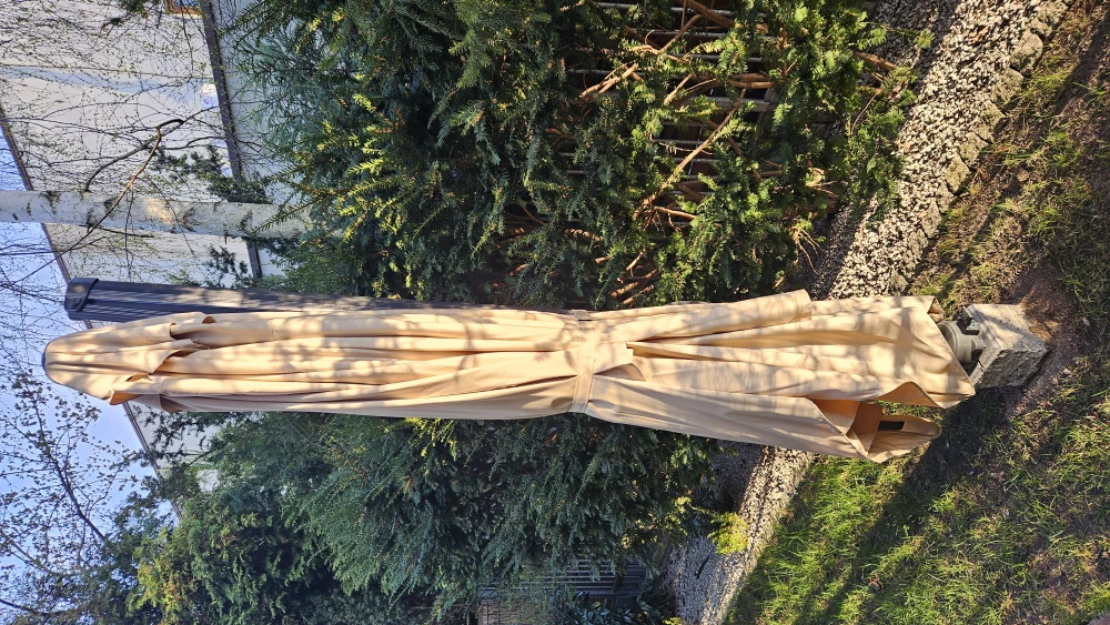 Producto de alta calidad. Montaje sencillo, sistema sensacional para plegar y girar el paraguas. Inmejorable a este precio. Vi un producto similar en una conocida cadena de tiendas de bricolaje - no hay comparación en la calidad, y la diferencia es de sólo doscientos y unos pocos zlotys.