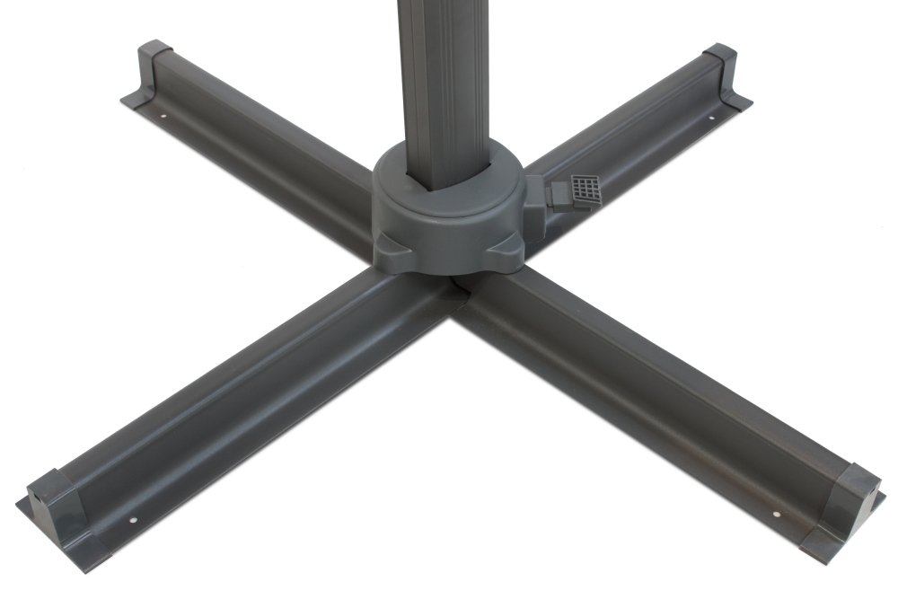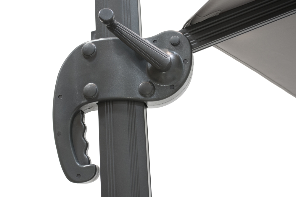 - El mástil lateral ofrece un posicionamiento óptimo – la tela se ajusta fácilmente al ángulo del sol.